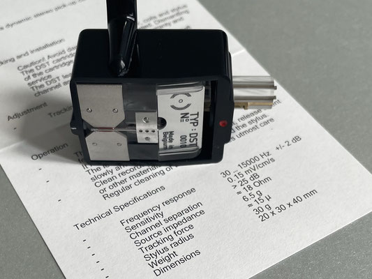 Note 4: Warranty conditions; The manufacturer and vendor warrants that every Neumann DST replica stereo MC cartridge is free of defects in material and workmanship. Also they guarantee excellent performance of the Neumann DST replica according to final tests which have been carried out by applying modern test methods. The warranty expires 1 year from date of purchase/invoice. Careful handling and observance of the operating instructions will ensure performance of a long period. The warranty does not cover defects of normal wear & tear, the diamond stylus, or any damages caused by improper handling.